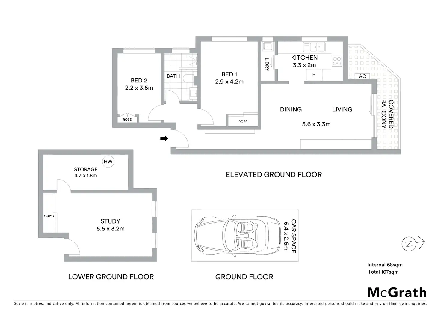 2 Bed • 1 Bath • 1 Car • 107m²