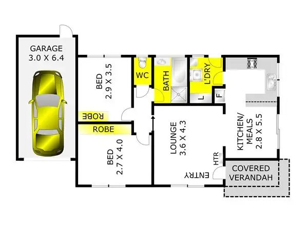 2 Bed • 1 Bath • 1 Car