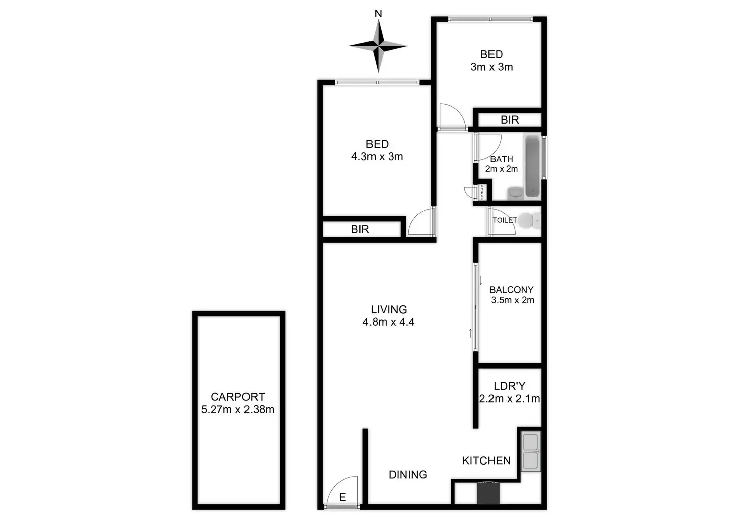 2 Bed • 1 Bath • 1 Car • 88m²