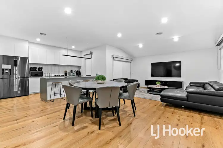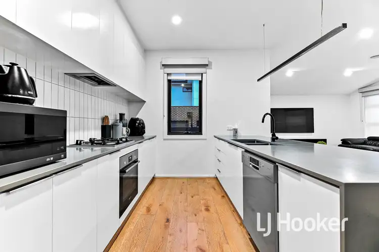 The moment you walk through the door of this double-story townhouse, which is located in a tiny, quiet, and well-kept development, you will be amazed. The open-plan family/meal area is exquisitely designed with comfort and convenience in mind, and you'll notice the magnificently engineered oak flooring right away. With stunning stone benchtops with waterfall edges, 2-pack cabinets, pendant lighting, and top-of-the-line Bosch appliances, the adjacent kitchen is right on style. There is also a sizable laundry room, a guest bathroom,