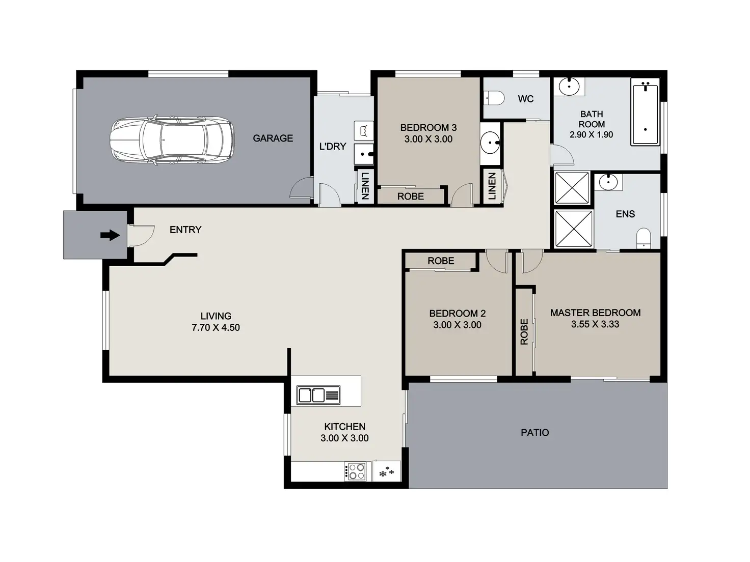 3 Bed • 2 Bath • 1 Car • 138m²