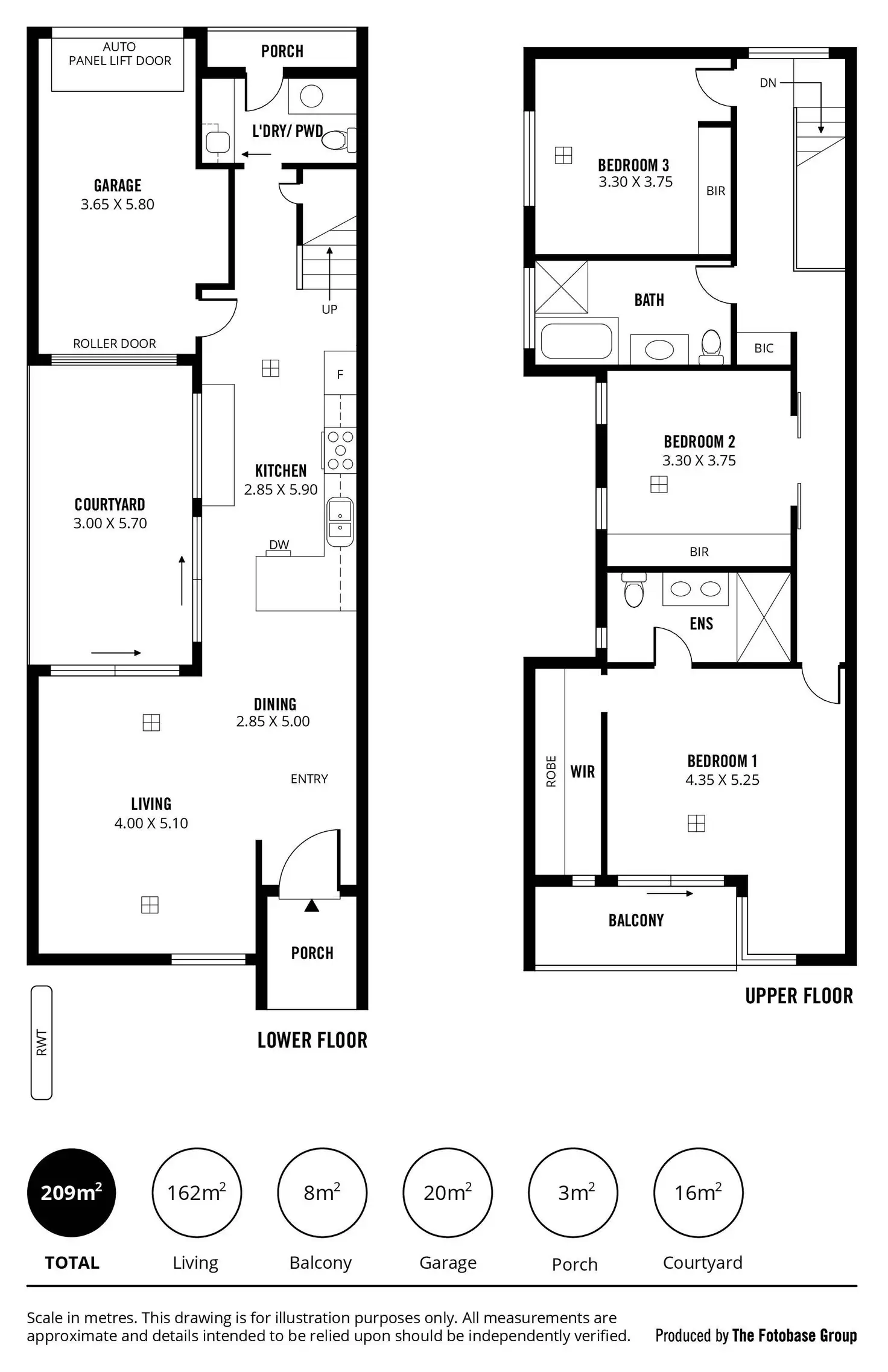 Upstairs three generous sized bedrooms include the stunning master, which has its own walk-in-robe, private balcony and sparkling ensuite bathroom with double vanity. The other bedrooms have mirrored, sliding-door built-in-robes and are serviced by a main bathroom with separate shower and bathtub.