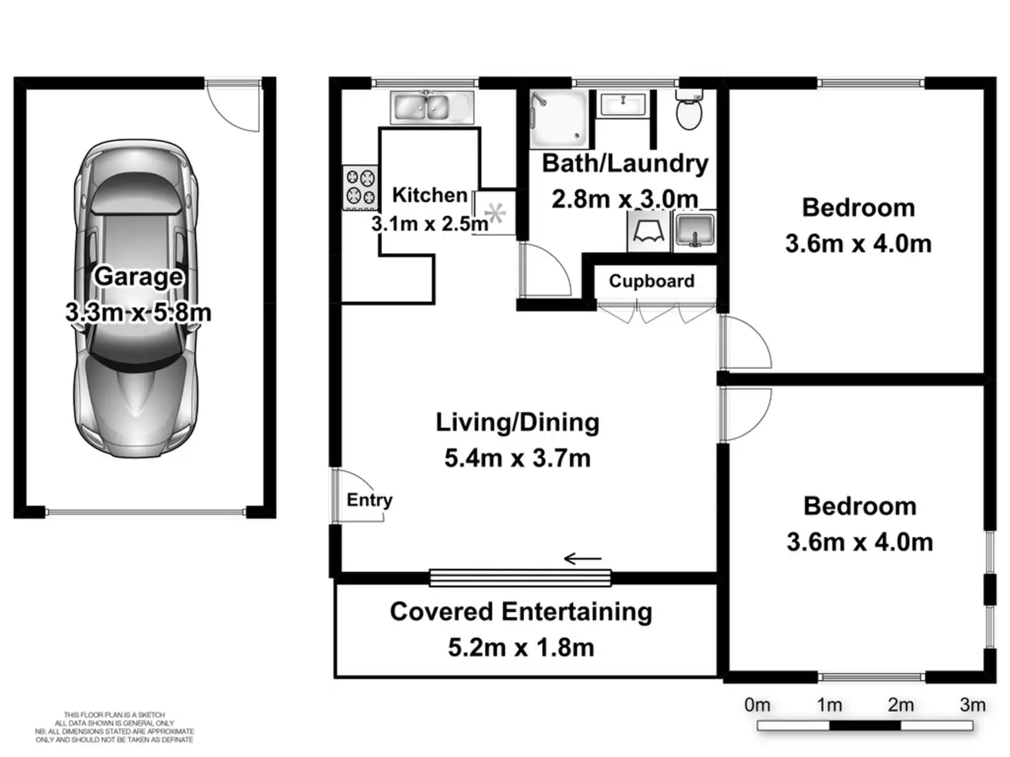 2 Bed • 1 Bath • 1 Car • 105m²