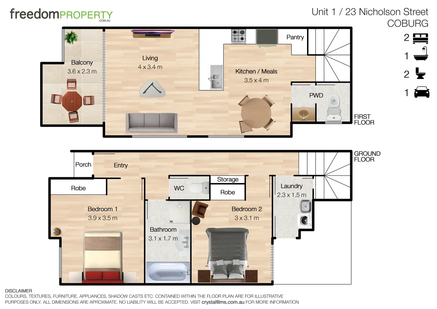 Immediate access to Coburg's key lifestyle attractions and all amenities you need within a short walking distance, such as numerous vibrant cafes, restaurants and renowned shopping precincts of Nicholson Street, Moreland Road (120m approx.), Lygon Street (800m approx.) and Sydney Road (1.1km approx.). In the midst of an array of public transport to CBD, bus and tram stops (120m approx.), Moreland train station on the Upfield line (1300m approx.) and Croxton train station on the Mernda line (2.7kms approx.). Moreland Primary School (900m approx.), Merri Creek trails (950m approx.) and Northcote Golf Course (950m approx.) are just a few of many local offerings of this prestige location with the CBD only 7kms away approximately.