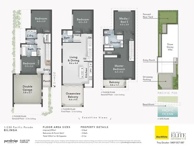 The master suite on the top level is in an inviting sanctuary to retire to at the end of the day. It comprises of a large walk in robe, deluxe ensuite with freestanding bath and its own oceanview balcony. A parents retreat / second living area or optional 5th bedrooms also occupies this level.