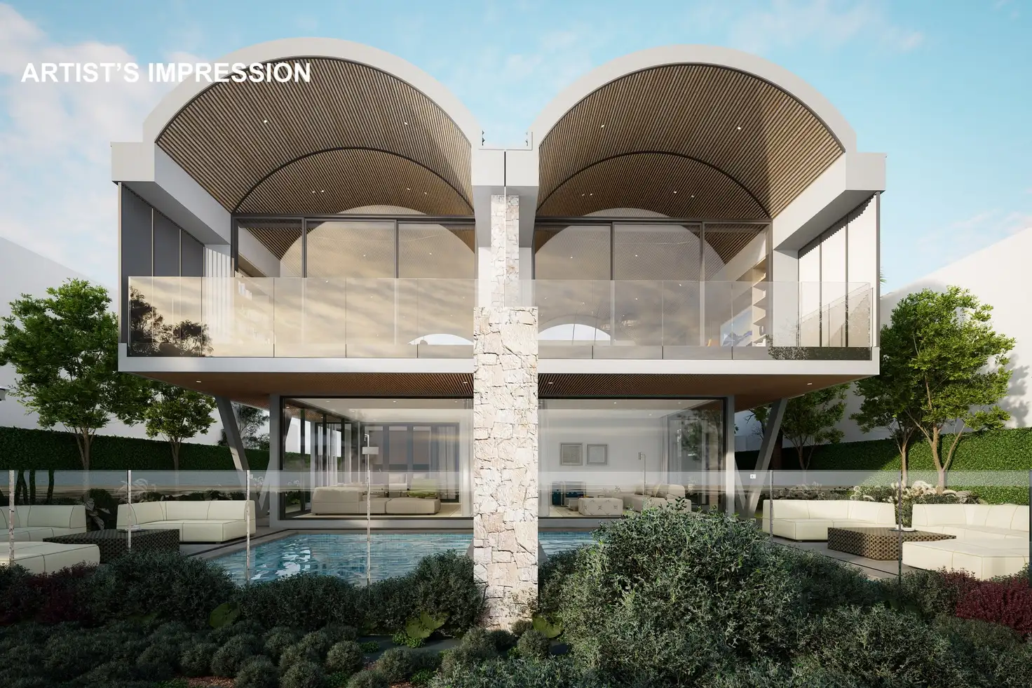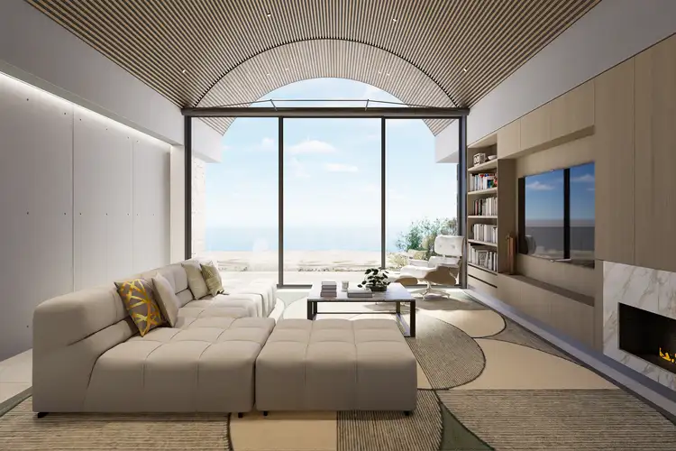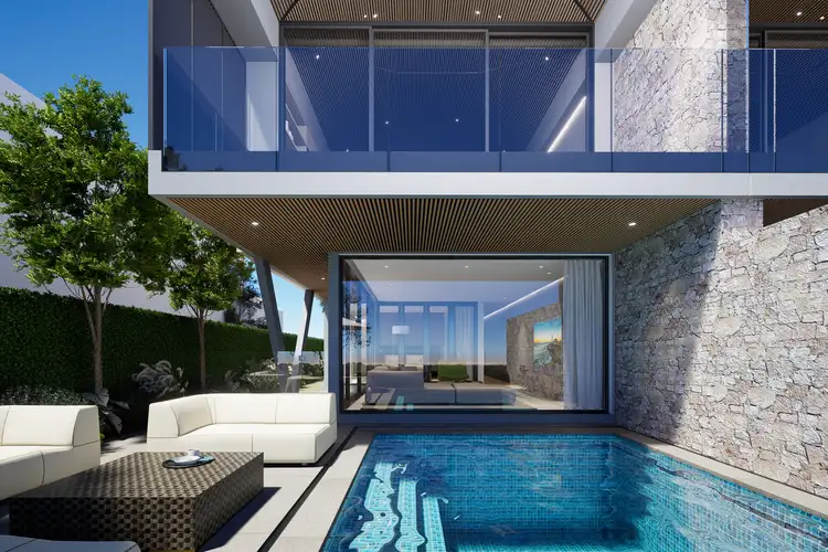 Taking absolute beachfront luxury to new heights, this opulent 4 bedroom + home office 4 bathroom town residence is one with its beachfront position and its own poolside bliss. Destined to be a landmark from the sand with its curved battened 4.5m approx. vaulted ceiling, this Clarke Architects designed haven uses layers of glass panels to create a seamless connection to the beach and the spectacular sunsets over the bay. Using natural materials including Oak finishes, sumptuous quartz agglomerate panels, brushed nickel tapware, beautiful porcelain slabs, stacked stone, large format ceramic tiling and glamourous lighting, this bespoke stunner is welcomed by a sun splashed entry foyer with lightwell acting as a bridge between the double auto garage with its home office and the remainder of the home. There are two downstairs bedroom suites with custom robes and a choice of kit kat tiled semi ensuite or ensuite (underfloor heating) – the main with glass concertina doors into the relaxed family room to make it one with the pool and bay view, or soak in the bath and admire the glistening views. A private lift and stairwell take you to the first floor with the designer open plan living and dining area featuring a gas log fire, library and stylish undercover terrace. The decadent kitchen has two islands and is encased in Oak look cabinetry, featuring leading appliances including microwave, dishwasher, 900mm wall oven and gas cooktop. The upstairs main bedroom with its own lightwell lobby entrance, has 3m approx. ceiling, a walk in robe and porcelain ensuite with bath. The 4th large bedroom has a semi ensuite and built in robes. The consulting style home office impresses with its own entry and is serviced by a kitchenette/store room with bathroom facilities easily accessible. The west facing landscaped courtyard has an open air alfresco terrace alongside the Bisazza tiled pool with seating steps and gated entry to the beach. Superbly proportioned, this north west facing residence is appointed with reverse cycle air conditioning, security including CCTV and video intercom, double glazing, solar panels, an underground water tank and a double auto garage. In Nyasa - a boutique group of four, situated in this exclusive cul de sac, moments to both Edithvale and Chelsea shops and new train stations taking you to Mentone Grammar, St Bede's and Kilbreda Colleges, with bus routes to Haileybury College via Edithvale Road. Note: construction due for completion mid 2027.