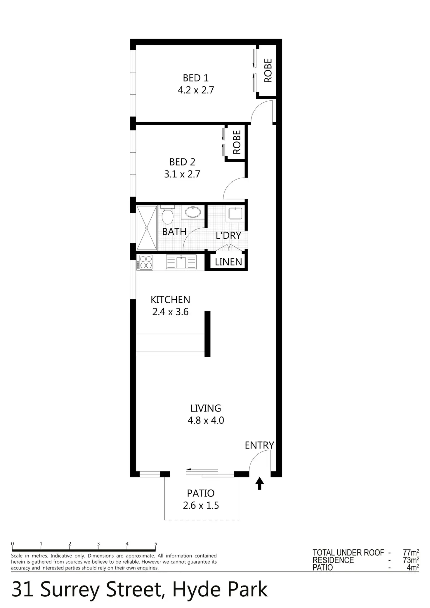 2 Bed • 1 Bath • 1 Car • 95m²