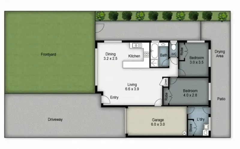 2 Bed • 1 Bath • 1 Car