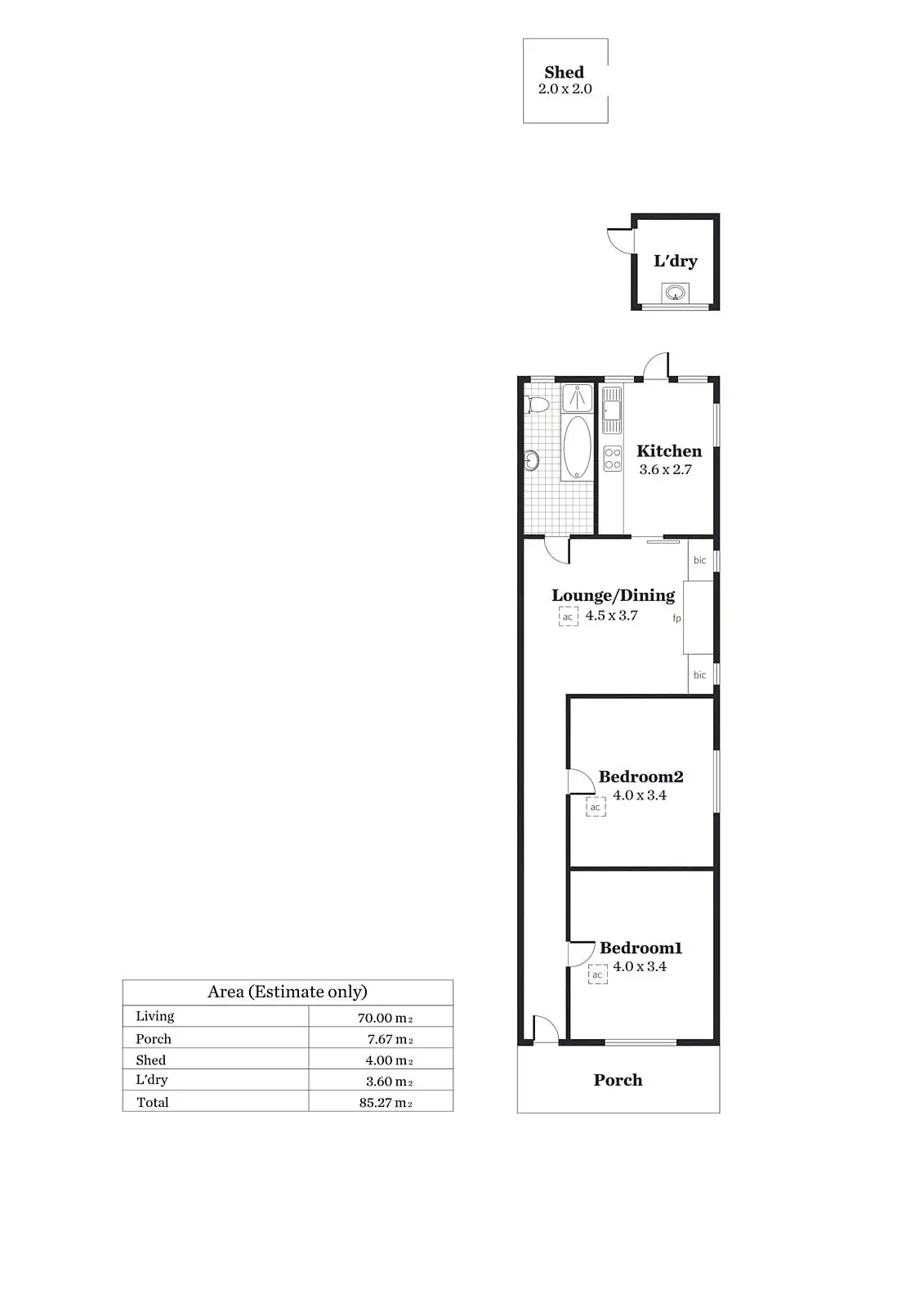 2 Bed • 1 Bath • 0 Car