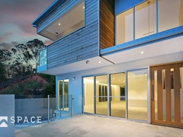 Elevated with views. Stunning design build. Enter on lower level via the massive garage for three cars to the spacious media/rumpus room. Up one level to the open plan living overlooking the shimmering pool.