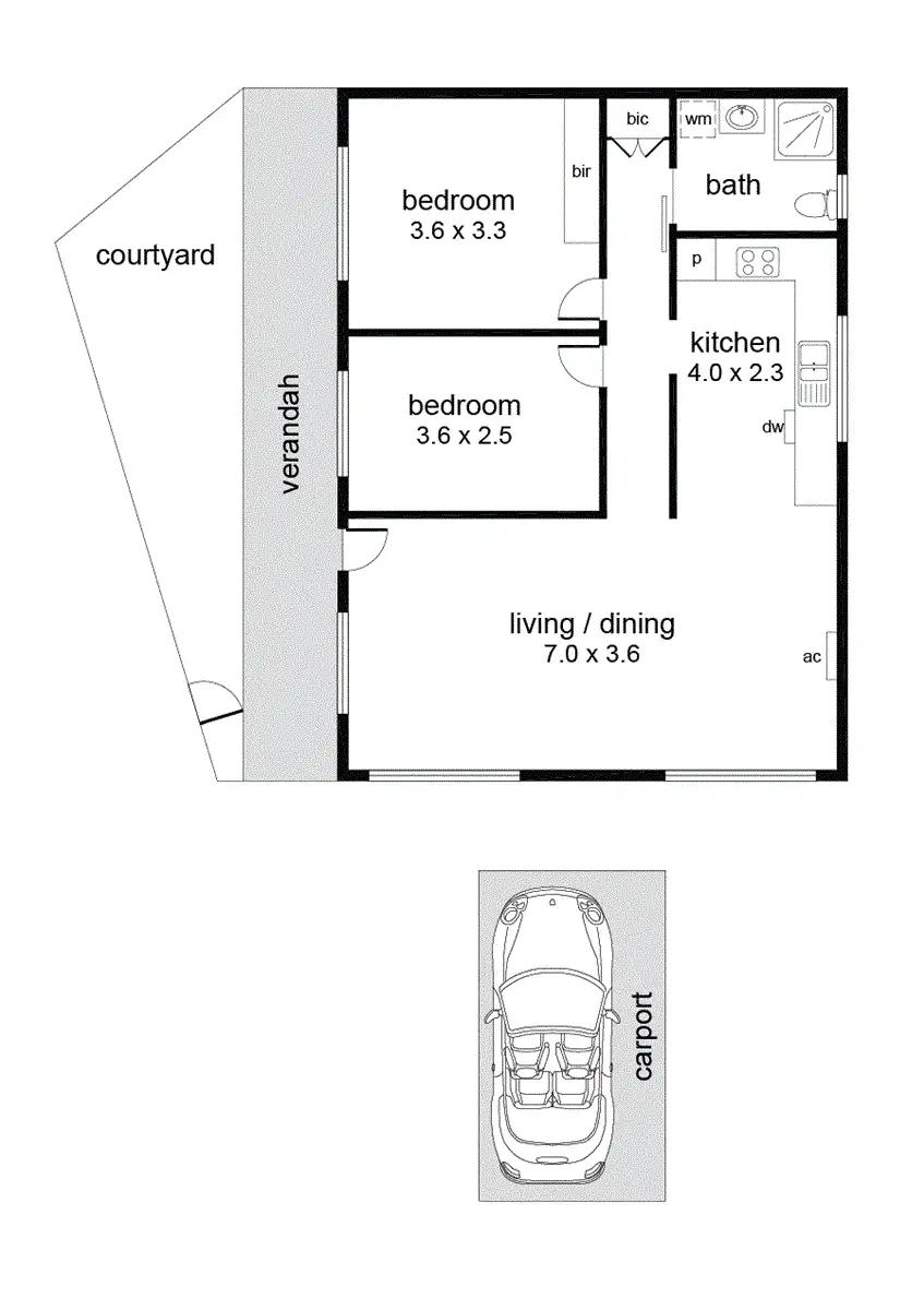 2 Bed • 1 Bath • 1 Car