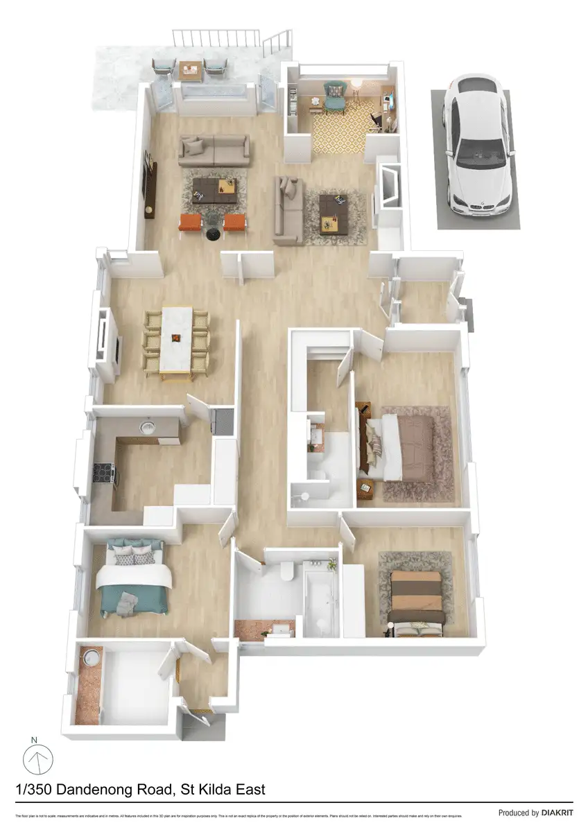Re-defining luxury apartment living, this bespoke three bedroom, two bathroom plus a study apartment covets the entire ground-floor of a boutique 1940 Art Deco building of only two homes for a private, quiet and refined lifestyle. Renovated with no expense spared, the expansive house size 164sqm (approx.) of internal living space reflects a unified narrative that is both unique and ageless. Exhibiting balance, nuance and sophistication, the elite finishes include superb custom made wrought iron doors and windows with double glazing, oak flooring, luxuriant marble surfaces, brass tapware and bathroom fixtures and bespoke lighting that nods to its Art Deco origins with contemporary flair. Hidden behind a grand portico entrance, the interiors revolve off a superb entrance foyer culminating in a magnificent north-facing living room with a Heat N Glo gas fireplace, elegant joinery and seamless access to a private leafy north-facing garden with a paved entertaining terrace and dining area leading around to excellent side access. Back inside, a separate dining room with ornamental fireplace is a sophisticated space to host guests; while the kitchen is state-of-the-art and curated for both the culinary aficionado and aesthetic pleasure. The fit-out includes marble surfaces, double oven, six burner cooktop, Sirius rangehood, twin drawer dishwasher, 2 Pak cabinetry and full size pantry with pull-out drawers. The three bedroom accommodation is exceptional, while a large study provides a refined work from home base. The main bedroom suite draws inspiration from high end hotels and features a walk-in robe and stunning ensuite with walk-in shower, bidet and marble, terrazzo and herringbone tiled finishes. The second bedroom features a built-in robe alongside the luxurious main bathroom with shower over bath and bidet. This impeccable home also features ducted heating, plantation shutters, full laundry and off-street parking for one car. On the fringe of Armadale, Malvern, Prahran and Windsor, this superbly located home also enjoys excellent proximity to city bound trams, cafes, restaurants, Caulfield Park and schools.
