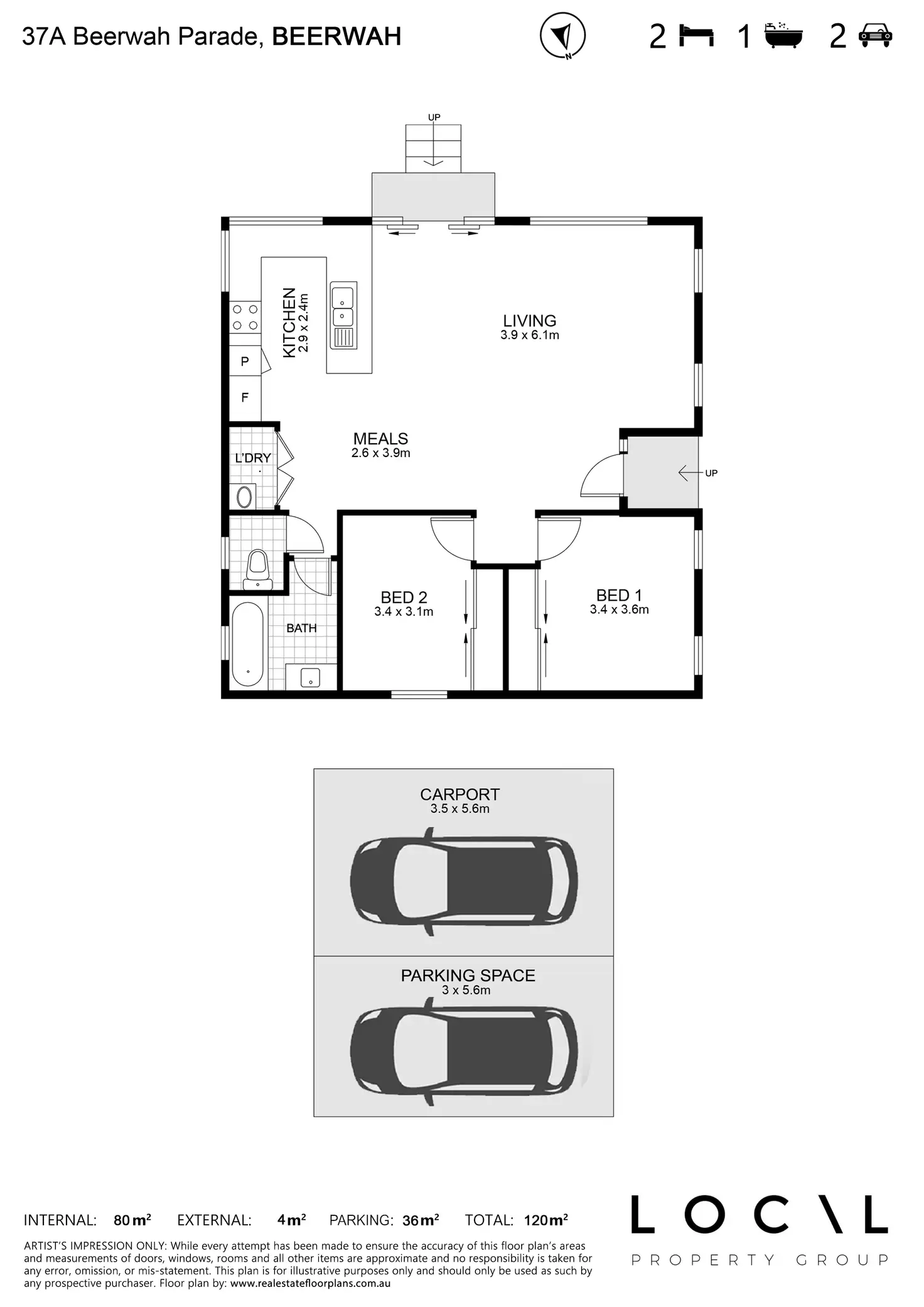 2 Bed • 1 Bath • 2 Car • 100m²