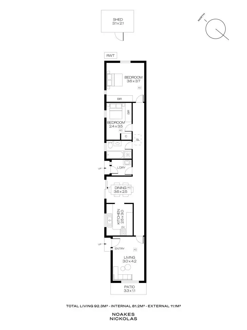 2 Bed • 1 Bath • 3 Car