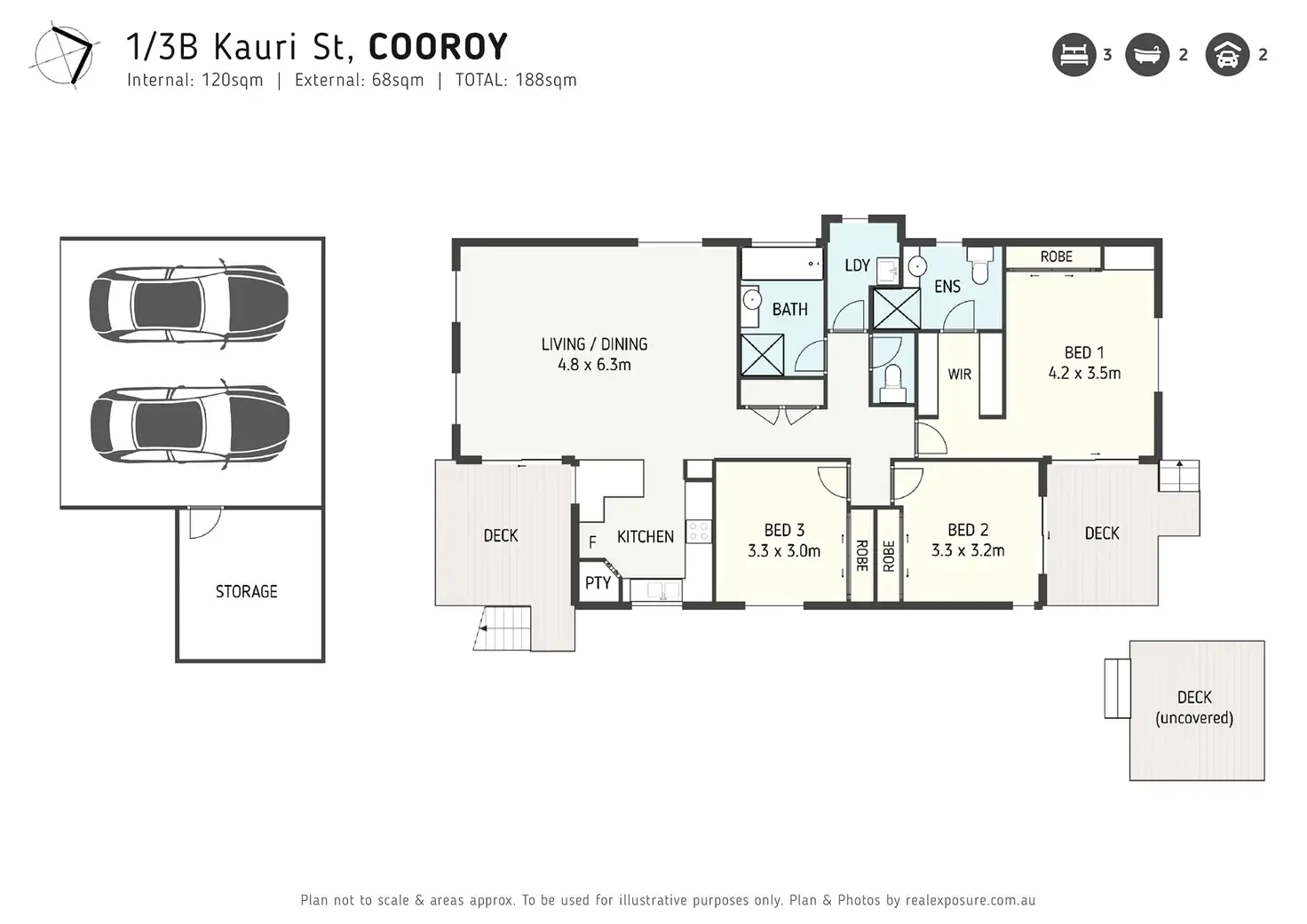 3 Bed • 2 Bath • 2 Car • 450m²