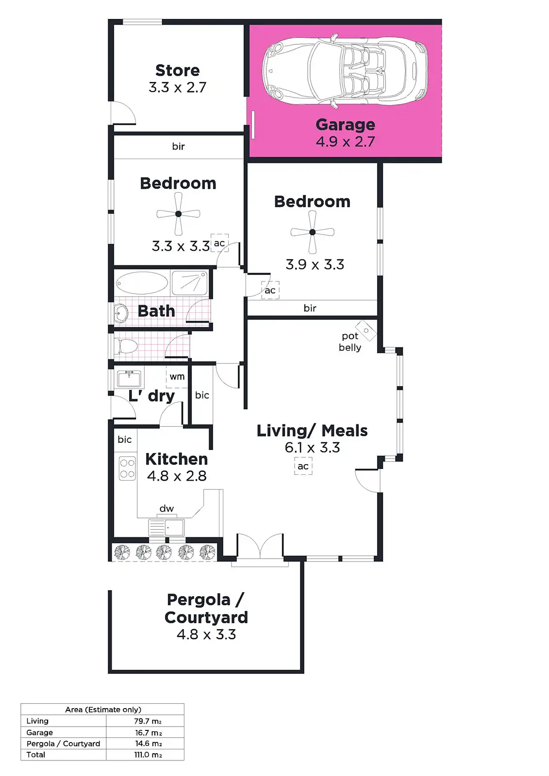 2 Bed • 1 Bath • 1 Car