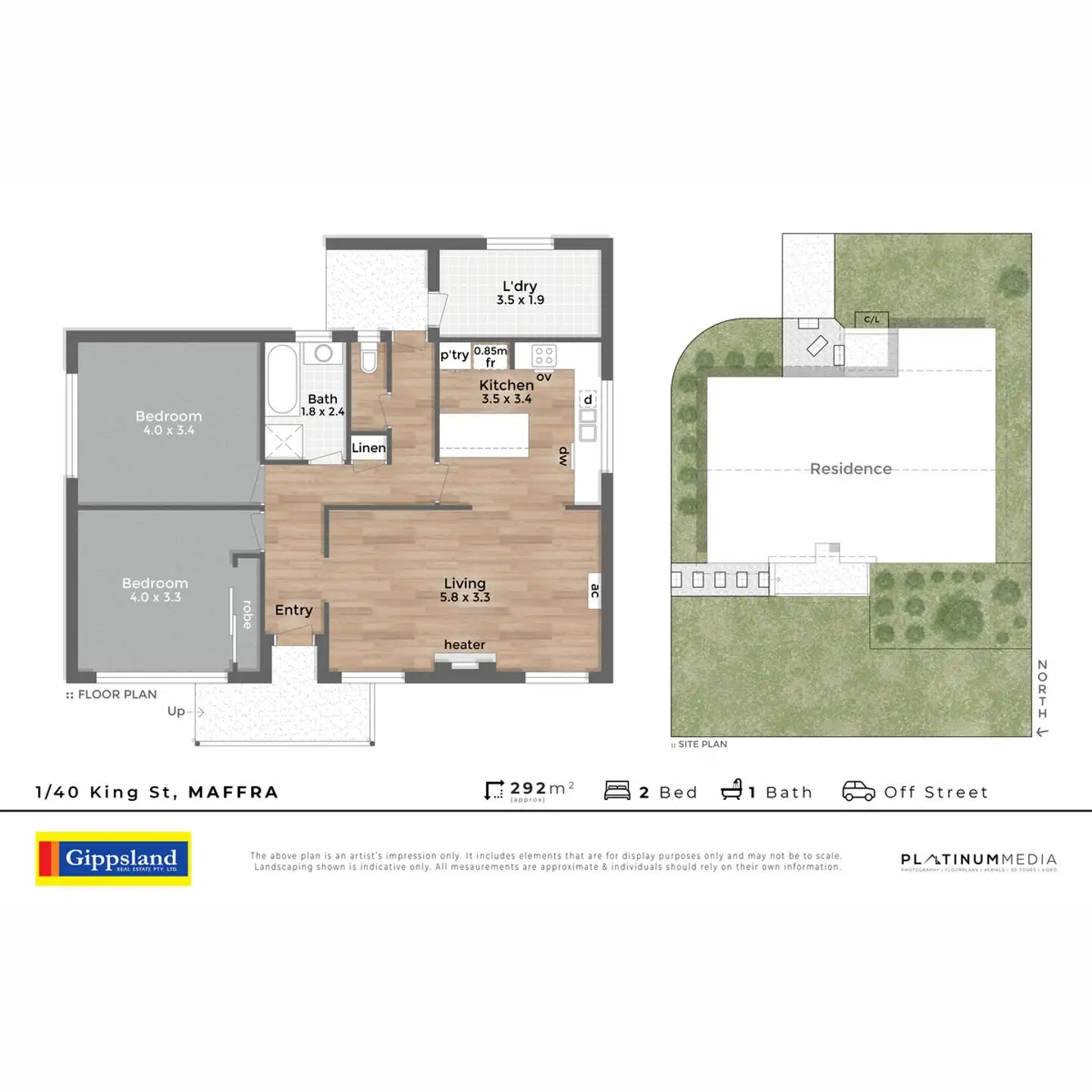 2 Bed • 1 Bath • 1 Car • 293m²