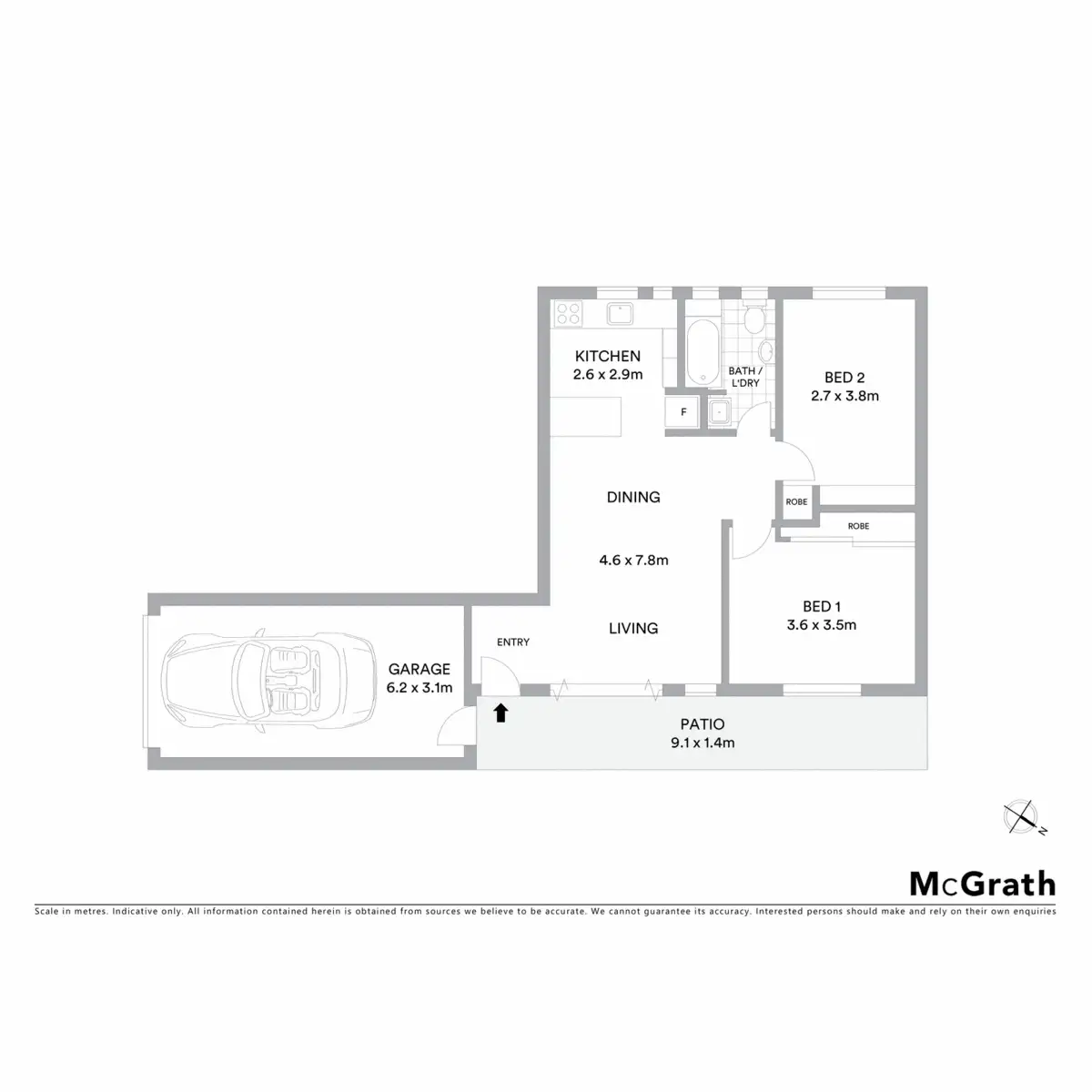 2 Bed • 1 Bath • 1 Car