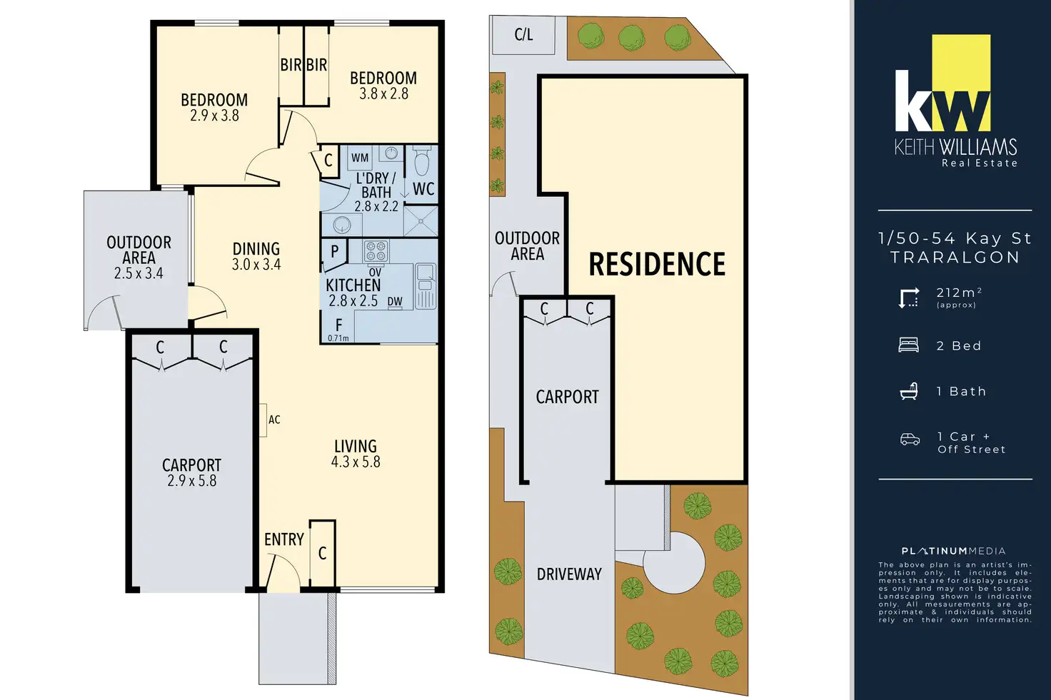 2 Bed • 1 Bath • 2 Car • 212m²