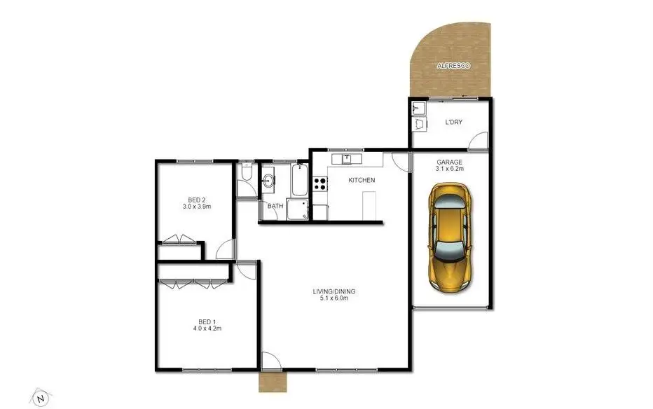 2 Bed • 1 Bath • 1 Car • 352m²