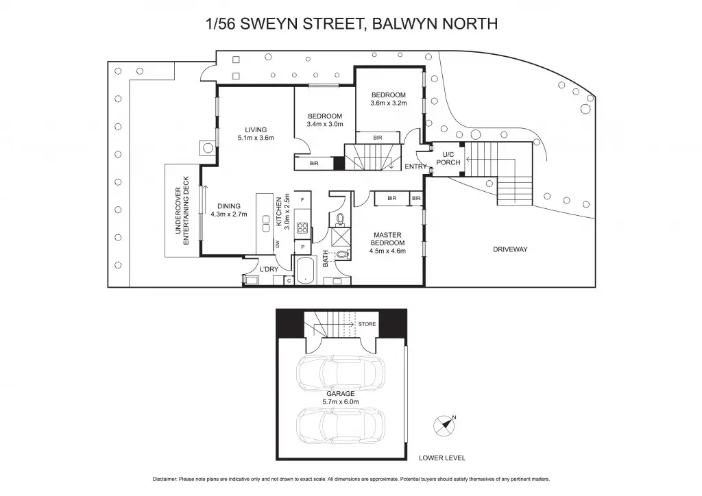 Three large bedrooms, all with built-in wardrobes, are serviced by a spacious and well-appointed central bathroom offering separate bath, toilet and shower, plus second separate toilet. The master bedroom at front with semi en suite is oversized at 4.5m to 4.6m proportions.