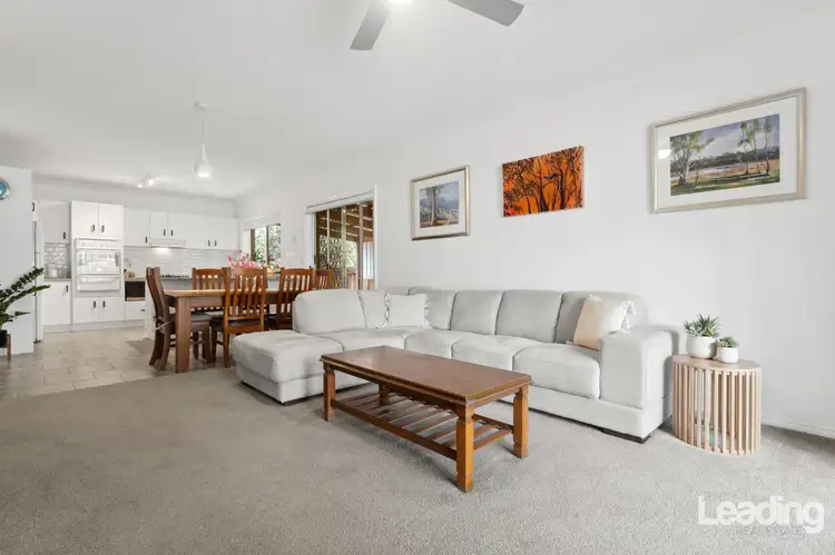 Step inside to a light-filled interior that combines the spaciousness of a house with the ease and comfort of a unit. The open-concept kitchen, meals, and living area is enhanced by high ceilings and decorative cornicing, creating a sense of warmth and elegance. The generously sized kitchen boasts abundant bench prep space, ample cupboard storage, and quality appliances, including a rangehood, and a 5-burner gas cooktop. Light cabinetry contrasts beautifully with dark benchtops and crisp white subway tiles, setting the stage for culinary creativity. This open concept, free-flowing space extends seamlessly to a sheltered, undercover outdoor entertaining area, perfect for hosting friends and family or enjoying a quiet moment all year round.