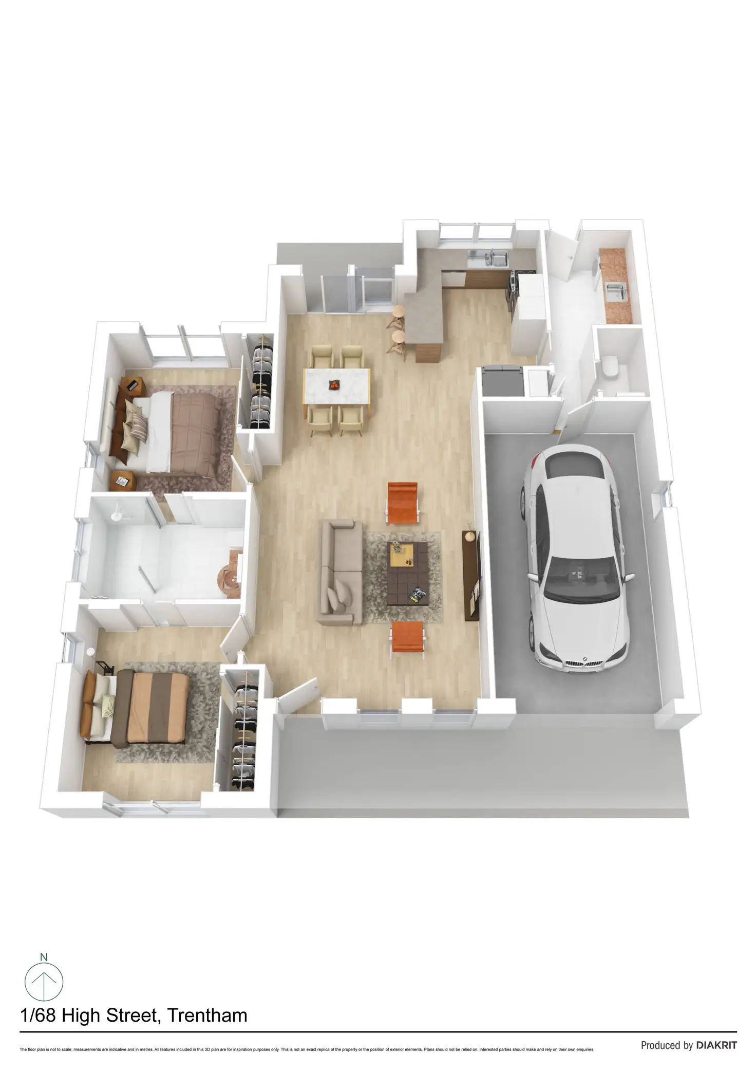 The well-designed, compact and functional kitchen, with reconstituted stone bench-tops, all electric hotplate, oven and dishwasher offers the perfect space for gourmet cooking with an adjacent spacious dining and living area for entertainment and relaxation.