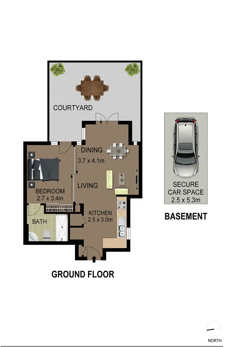 1 Bed • 1 Bath • 1 Car