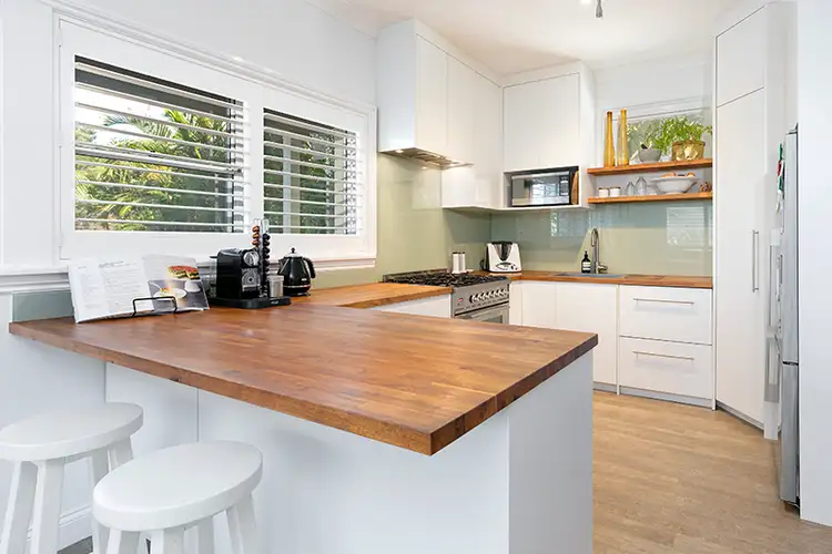 Inside boasts a highly functional, spacious floor plan including a coveted 2nd living area with an easy flow through to the outdoors. The lounge and dining area is open plan with plenty of sunshine and natural light, the perfect place in which to relax or entertain. The designer kitchen includes gorgeous timber benchtops, an oversized Ilve gas cooker and oven, and breakfast bar for casual meal-times.