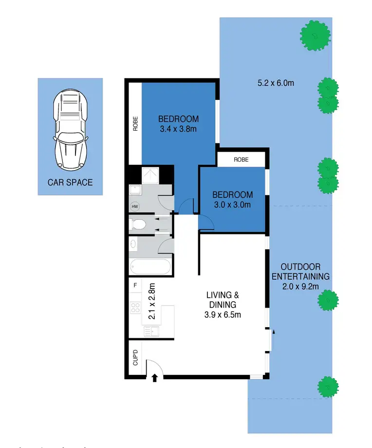 2 Bed • 1 Bath • 1 Car