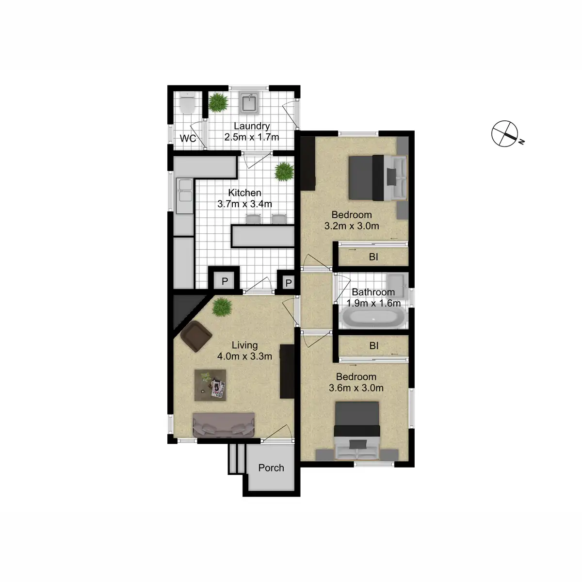 2 Bed • 1 Bath • 1 Car