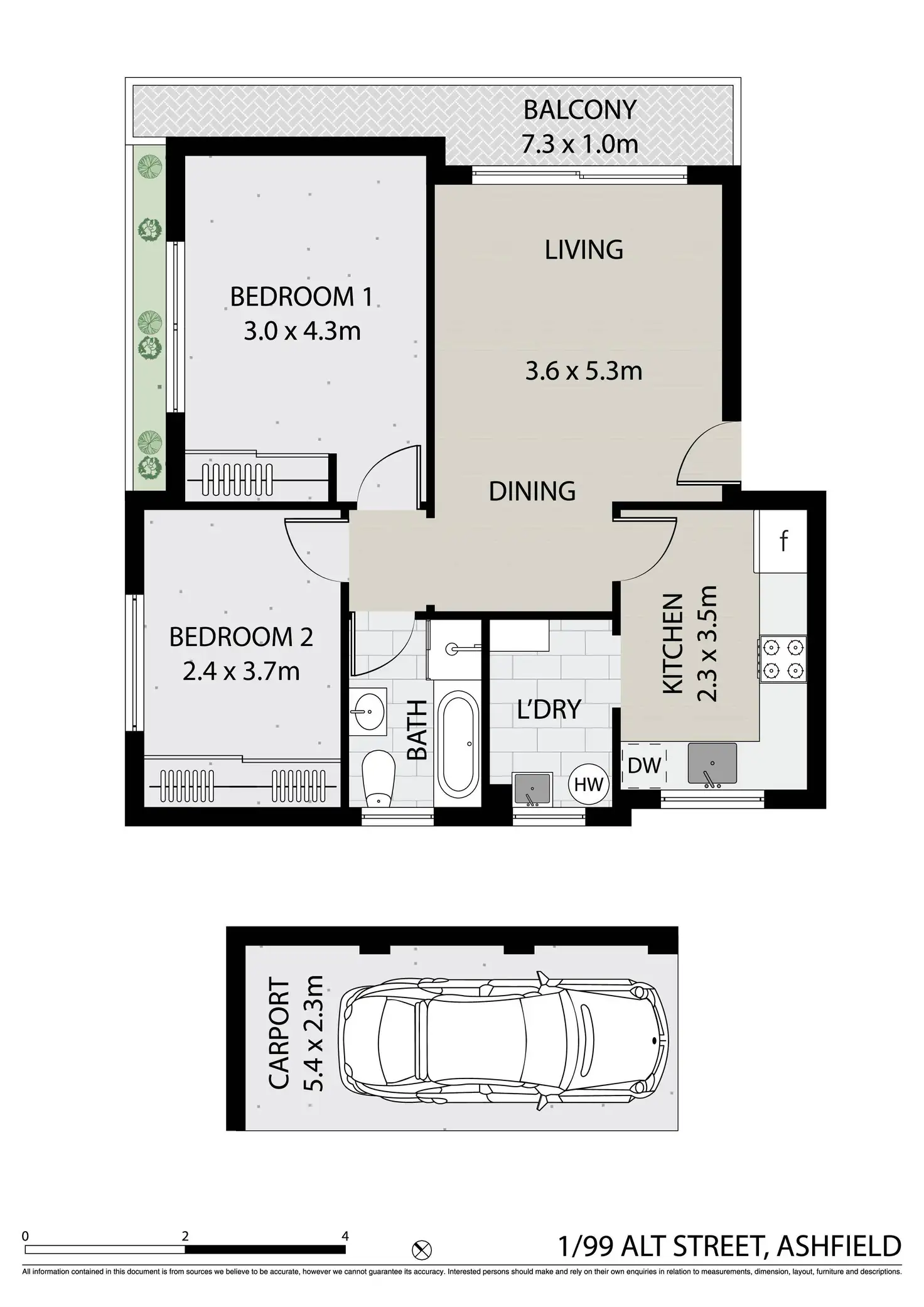 2 Bed • 1 Bath • 1 Car • 91m²
