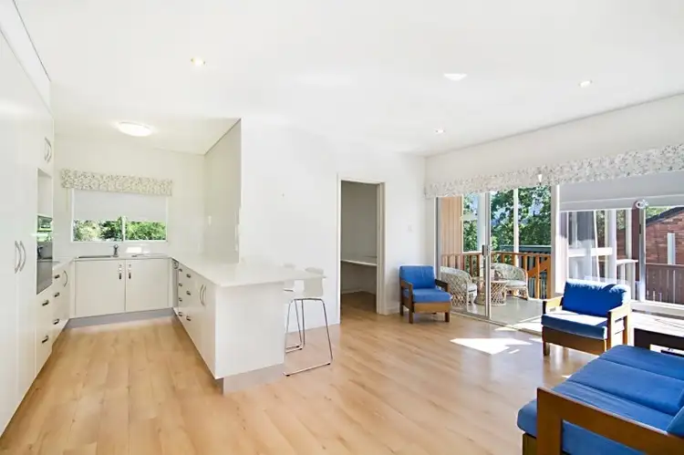 The home has undergone some modern updates in recent years with a new kitchen (gloss cabinetry and Caesar stone bench tops), new paint and carpets. The lounge area is bathed in abundant natural light from large expanses of glass on both sides and enjoys a elevated view over neighbouring homes to Mt Warning and the Border Ranges and also has a brick fireplace.