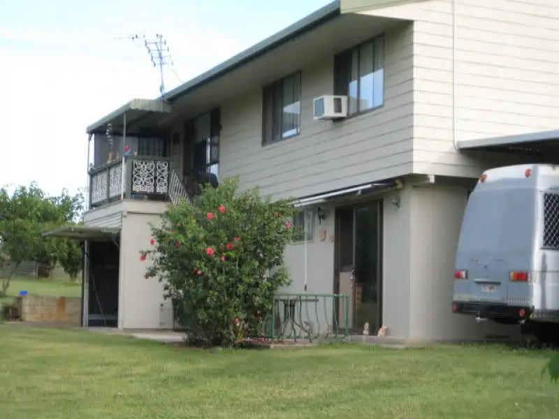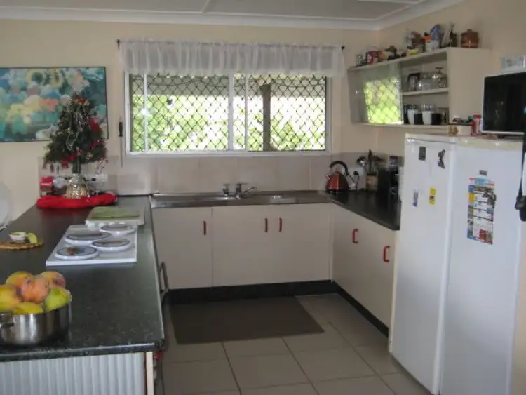 Three bedrooms up stairs all with built ins, main with aircon floating floor, carpet in the two spare rooms, bathroom refurbished walk in shower, open plan lounge, dinning, refurbished kitchen, split system air con, tiled floor throughout the rest of the up stairs, walk in pantry front and back deck, great views all around, down stairs 1 bed room open plan lounge, dinning, kitchenette, and bar, laundry, toilet, bath room shower over bath, awning over front door, and air con floating floor, double garage, boat shed and carport, tool shed and mower shed, solar on roof good save on power, bore fully equipped with good water, fernery, chook pen .two water tanks one 5.000 gal and one 3.000 gal ,poly with pumps fully fenced with three gate entry corner block .heap,s of shade tree,s 16 assorted fruit tree,s school bus at front gate ,bowl,s club & tennis ,polo,and other horse activities just down the road .10 minutes to shop,s doctors , p office ect great place to start up your own business selling your fruit and vegies jam,s and more ,lovely area to live .45 min to gympie under three hours to Brisbane . house built in 1991 ,feel free to ring if you have any questions ......the last six photo,s are down stairs . consider swap for childers, colliope , or gladstone area,.all reasonable offers will be considered land size is 2,322m2