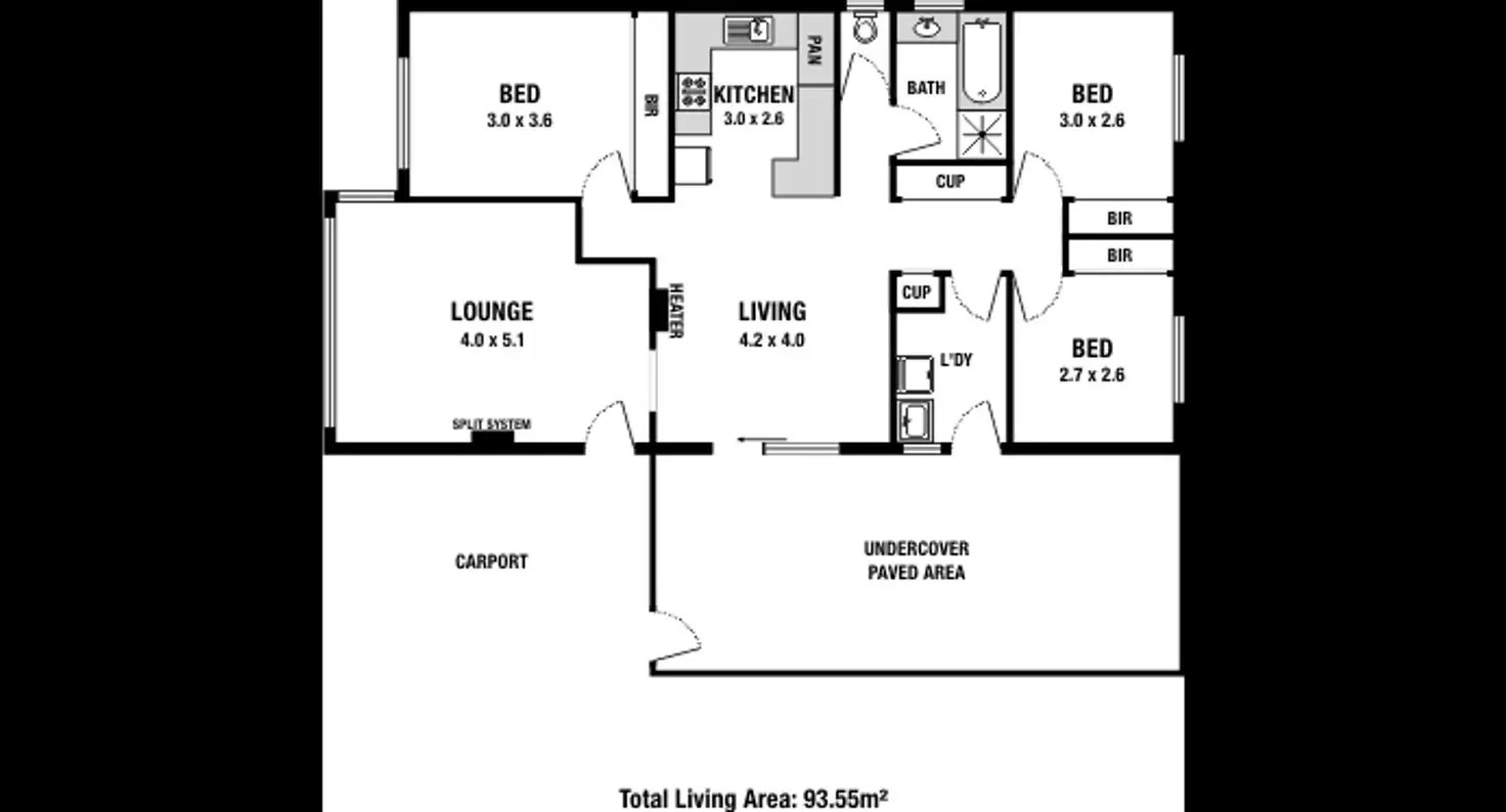 - Three bedrooms, traditional layout, plenty of covered outdoor entertaining area