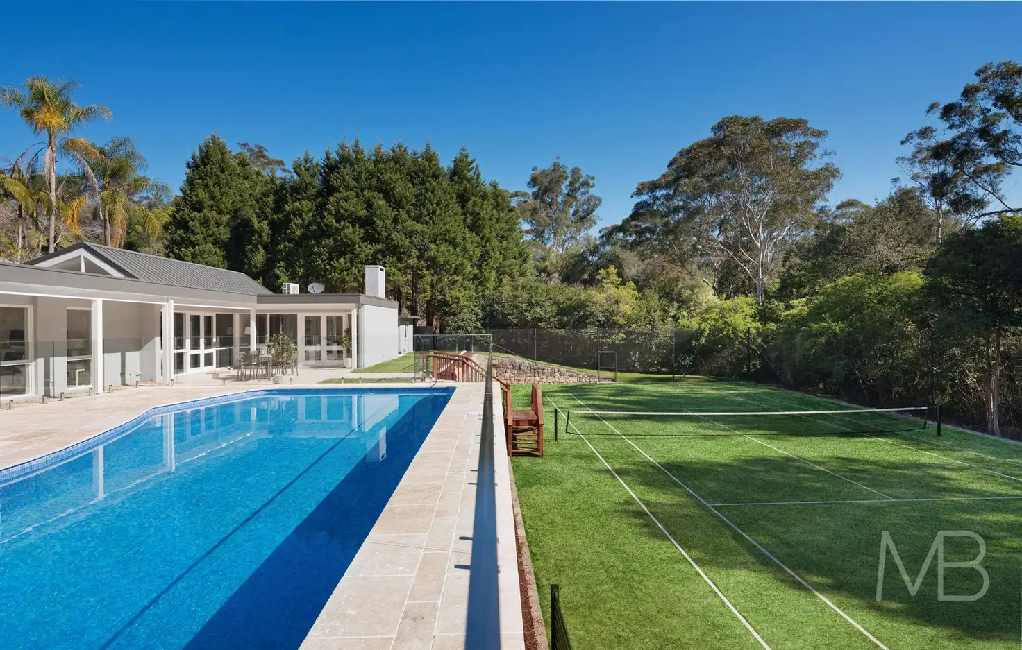A breathtaking renovation has realised the amazing potential of this unique resort style estate with its leafy surrounds, fully tiled pool and tennis court