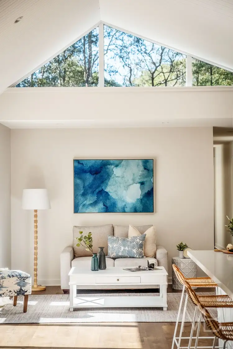 Family room bathed in light with vaulted timber-panelled ceiling and clerestory windows