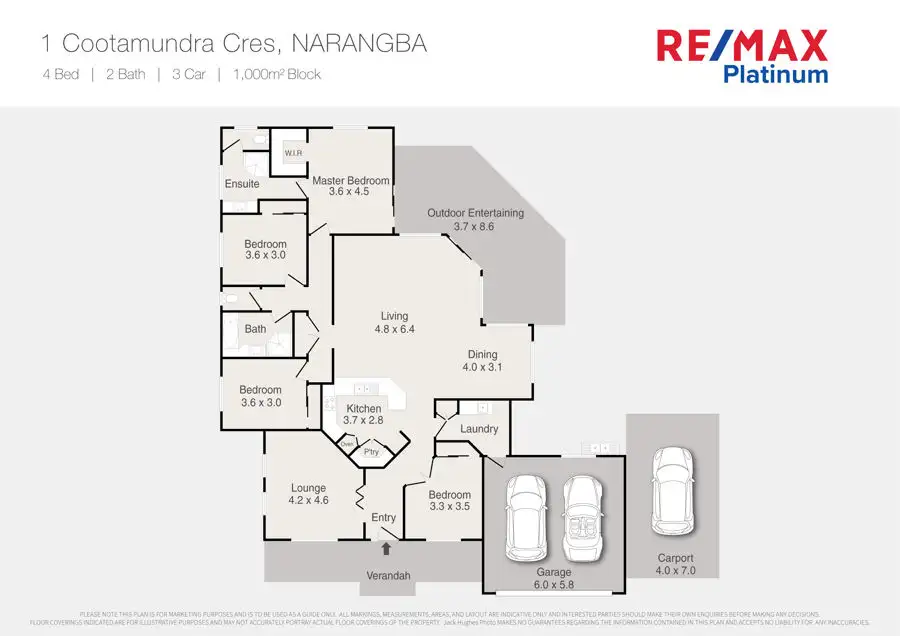 4 Bed • 2 Bath • 3 Car • 1000m²