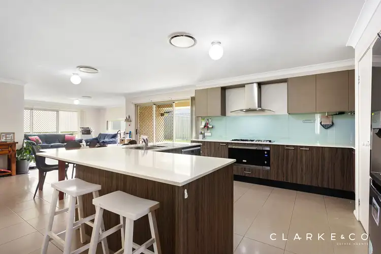 Set at the heart of the home is the massive gourmet kitchen, sure to please the most discerning home chef. This impressive kitchen features a 900mm Omega stainless steel oven, gas cooktop and dishwasher, an abundance of storage space, and a sleek glass splashback. An island bench with chic stone benchtops provides additional preparation room, making family mealtimes a breeze, with a handy breakfast bar in place to enjoy casual family mealtimes.