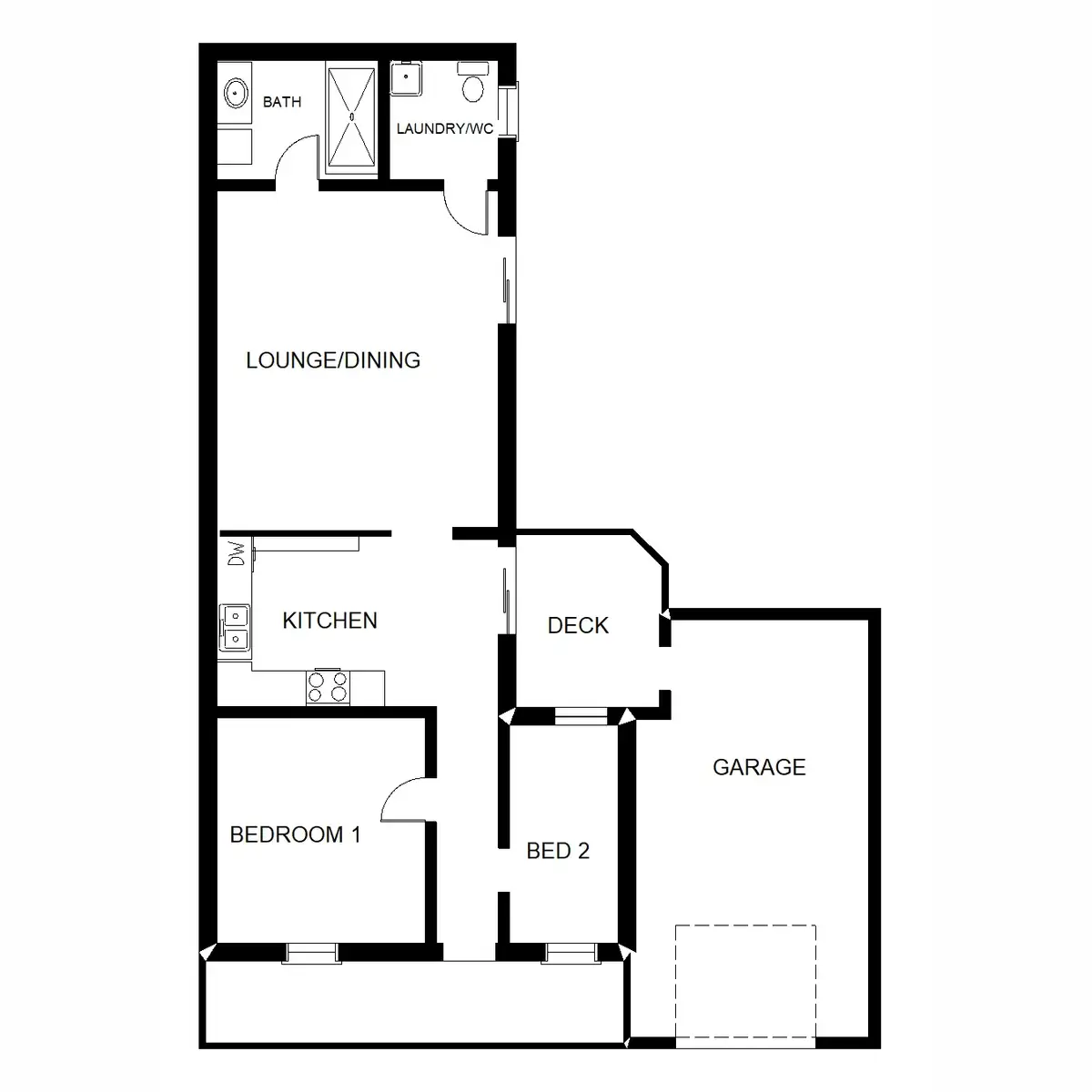 2 Bed • 1 Bath • 1 Car • 180m²