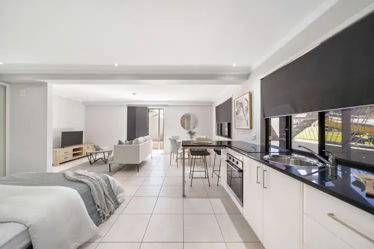 Downstairs is fully self-contained open plan living with a "Murphy Bed" Perfect as a Granny Flat or Teenage Retreat. Modern kitchen and appliances, plenty of storage and tiled throughout. The lock up garage has direct access to the lower level for peace of mind and convenience.