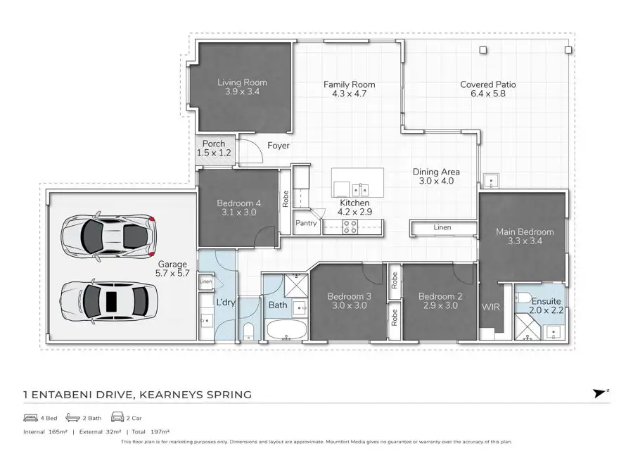4 Bed • 2 Bath • 2 Car • 564m²