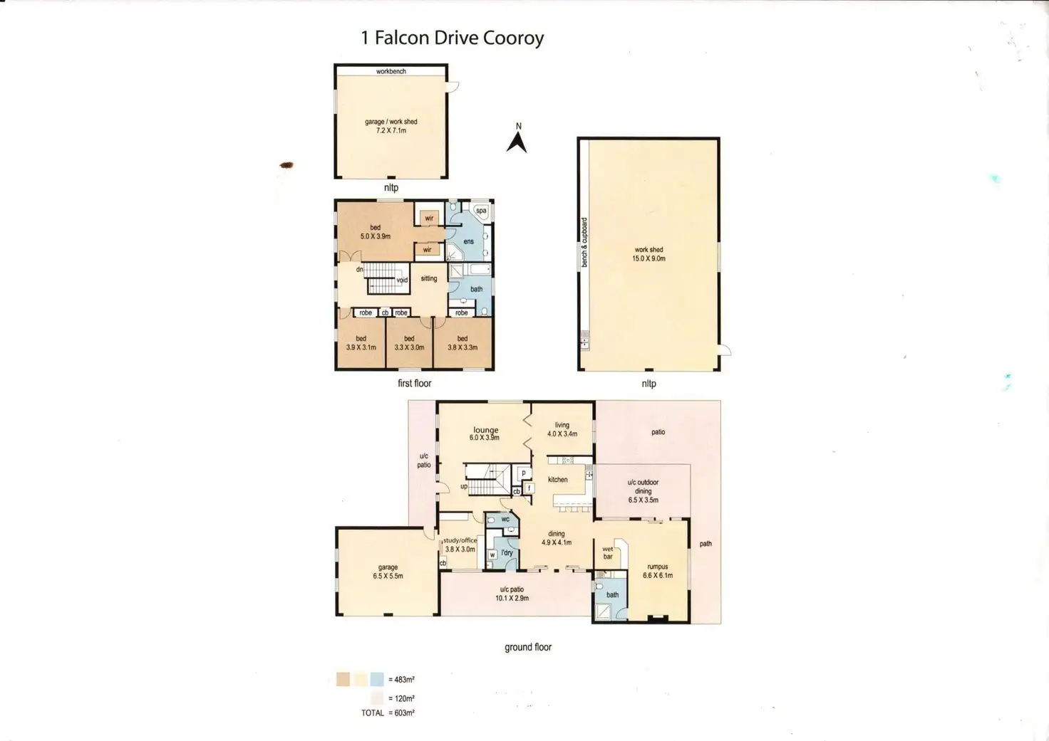 *5 Bedrooms, 2 Living + open plan kitchen & dining room,3.5 Bathrooms, 2 x 2 garage, 2 front doors,Double office, 2 sheds & In-ground Pool, Entertainment area,Front verandah & Fully fenced grassed front yard all with 2 concrete driveways one at front entrance and one at rear to the sheds.