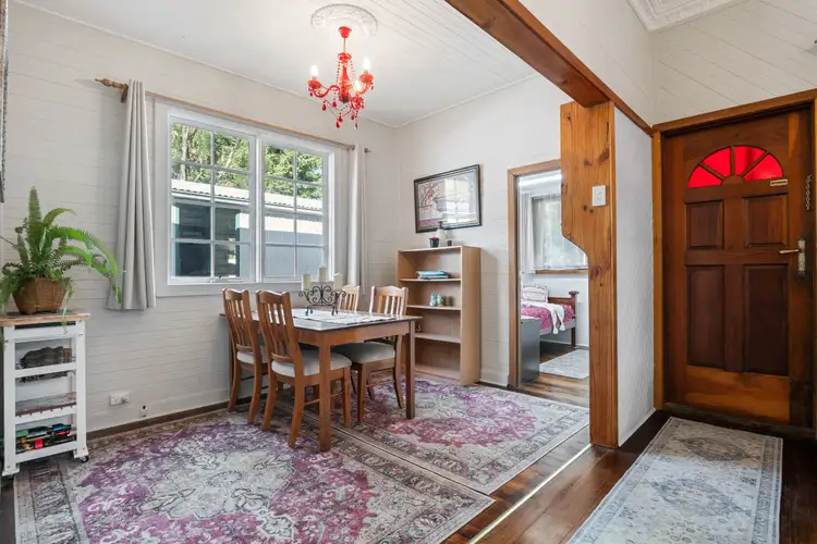 Rich with character, this one-of-a-kind treasure, featuring a heritage farmhouse and a separate granny flat, offers historic charm and flexibility in a serene setting. Wrapped by stunning English gardens, this private oasis welcomes you with a charming covered porch that sets the tone for the home's distinctive appeal. With extensive updates, including a new Colorbond roof and fresh paint, updated wiring and lighting, and a heat pump hot water service, this weatherboard beauty is move-in ready, powered entirely by a large solar system and electricity.