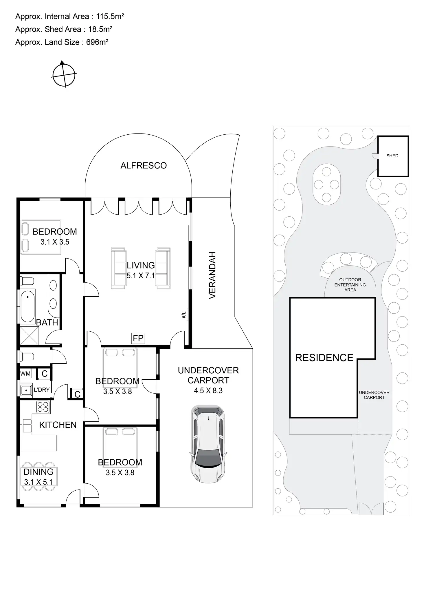 3 Bed • 1 Bath • 1 Car • 696m²
