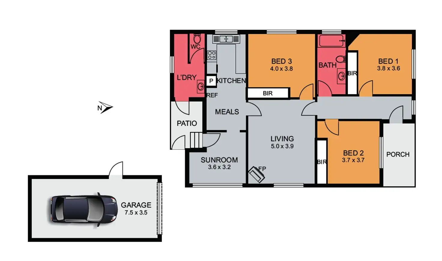 3 Bed • 1 Bath • 2 Car
