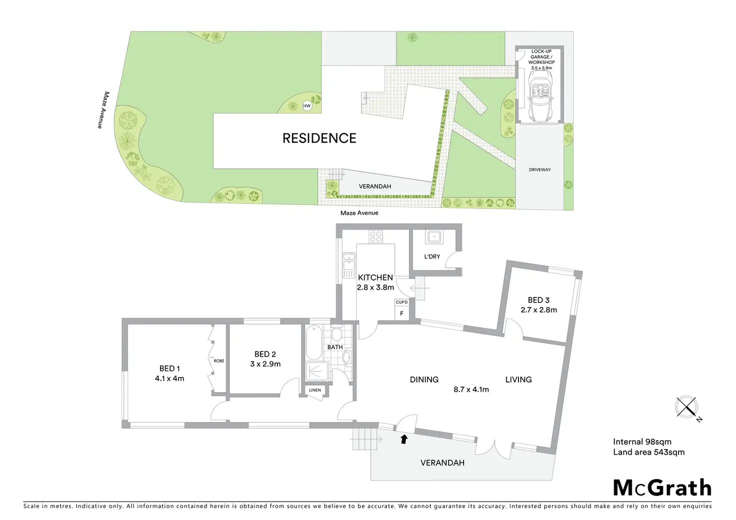 3 Bed • 1 Bath • 2 Car • 543m²
