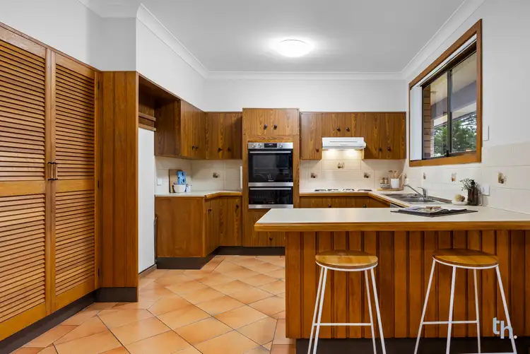 - Large timber kitchen with modern oven adjoins a spacious dining zone