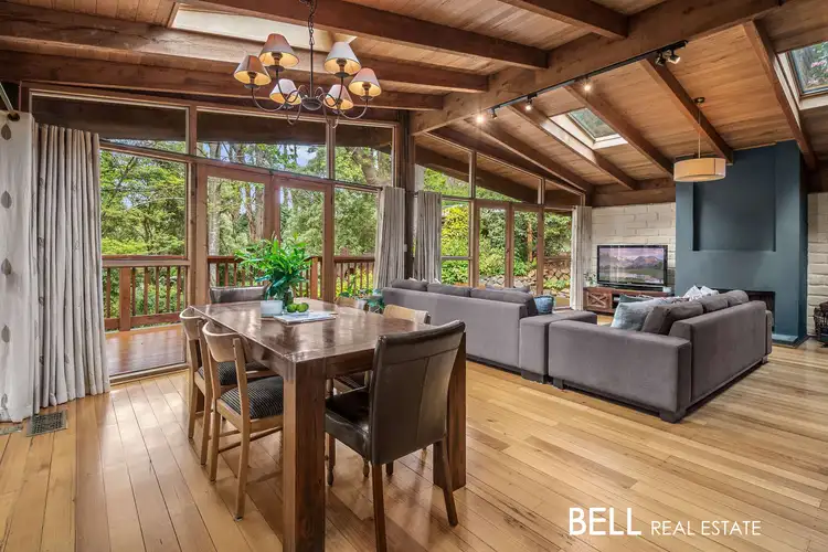 A true treetop hideaway, this architect-designed mud-brick home is situated in one of Ferny Creek’s most exclusive locations and showcases stunning craftmanship and design atop an exquisite 3631 sqm lush landscape. Offering retreat style living over three versatile levels with lashings of light, earthy timber floors, recycled timber accents, lofty raked ceilings and panels of illuminating glass framing treetop views, it’s the perfect private escape yet only a five-minute walk to school, a leisurely 200m walk to Mangos Nuts Pizza and Pasta and in under 10 minutes you can enjoy the conveniences of Sassafras, Kallista or Upper Ferntree Gully. Boasting a prized outlook from its expansive decking, along with wonderful privacy and serenity, this is a magical place to raise a family and call home.