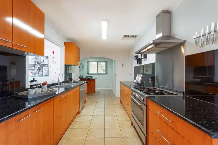 The living areas include a separate lounge and adjacent study/office. There are two dining areas, one is a casually styled with breakfast bar and the other is large enough to accommodate family and guests. The kitchen is spacious and includes a wide 6 burner gas cook top, electric oven, stainless steel splashback, dishwasher, ample cupboards and bench space.